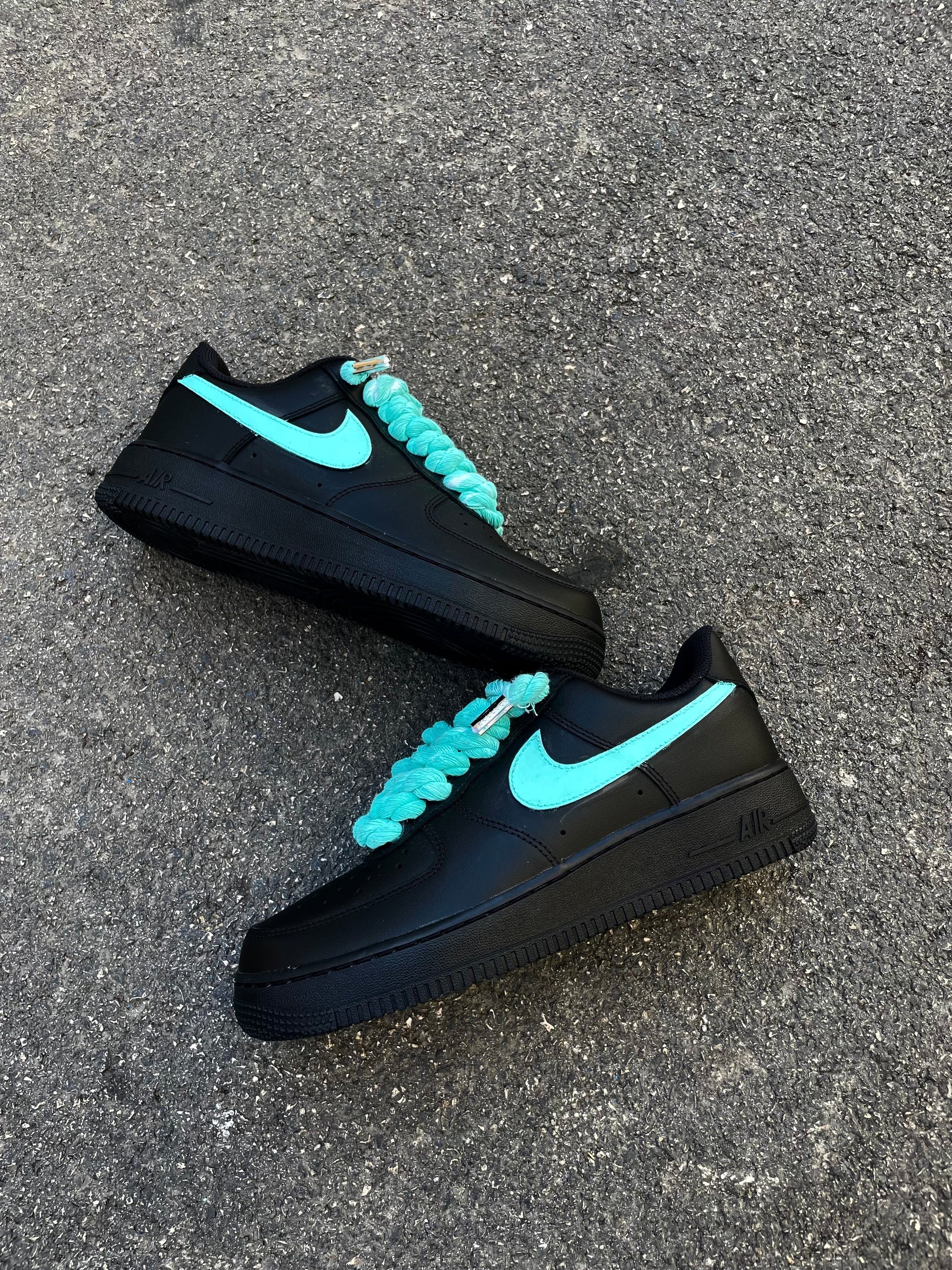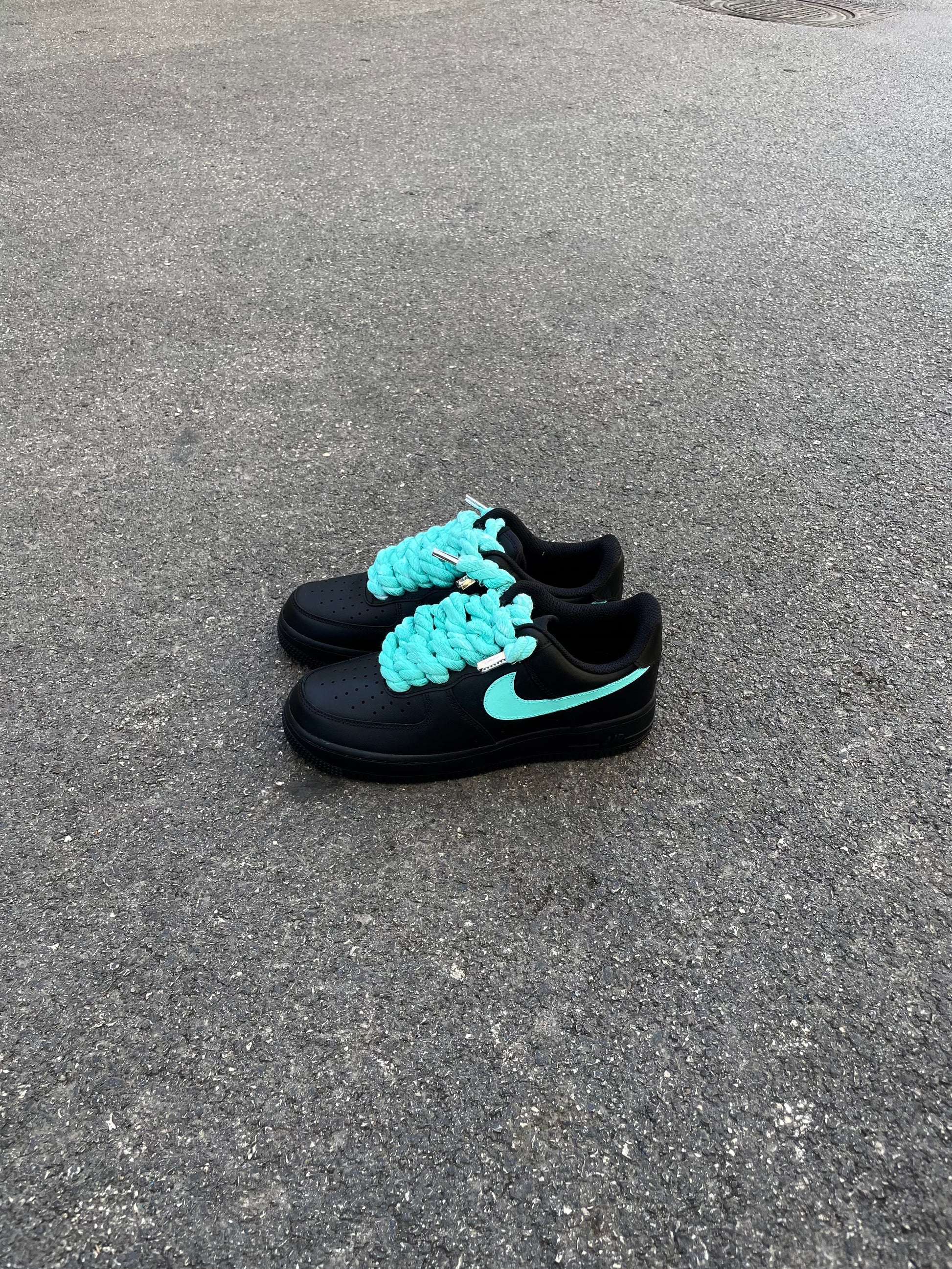 Air force 1 con corda verde acqua e swoosh verde acqua