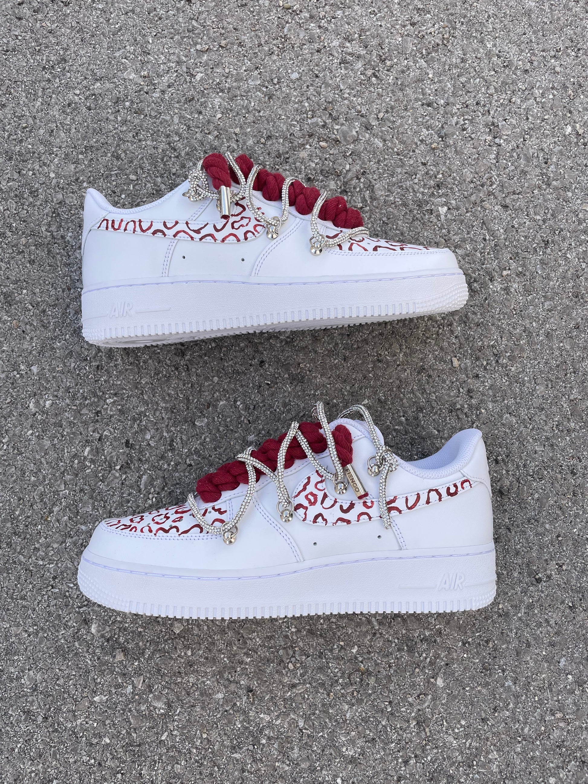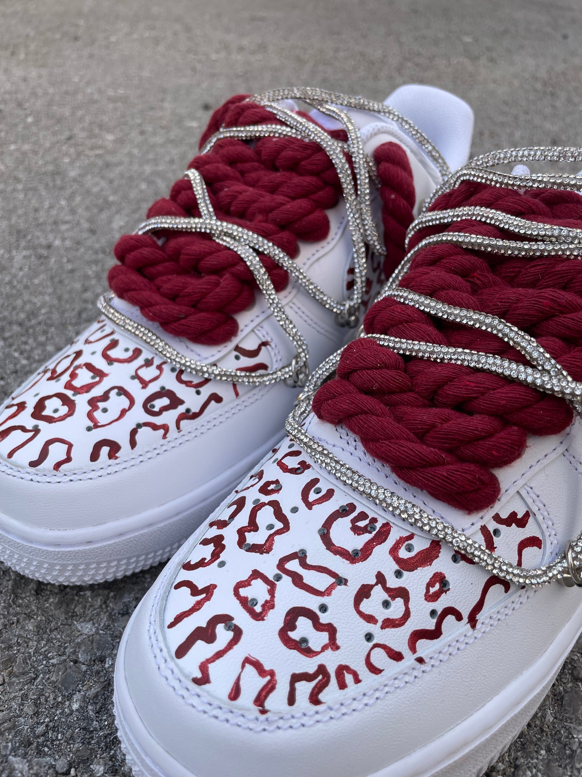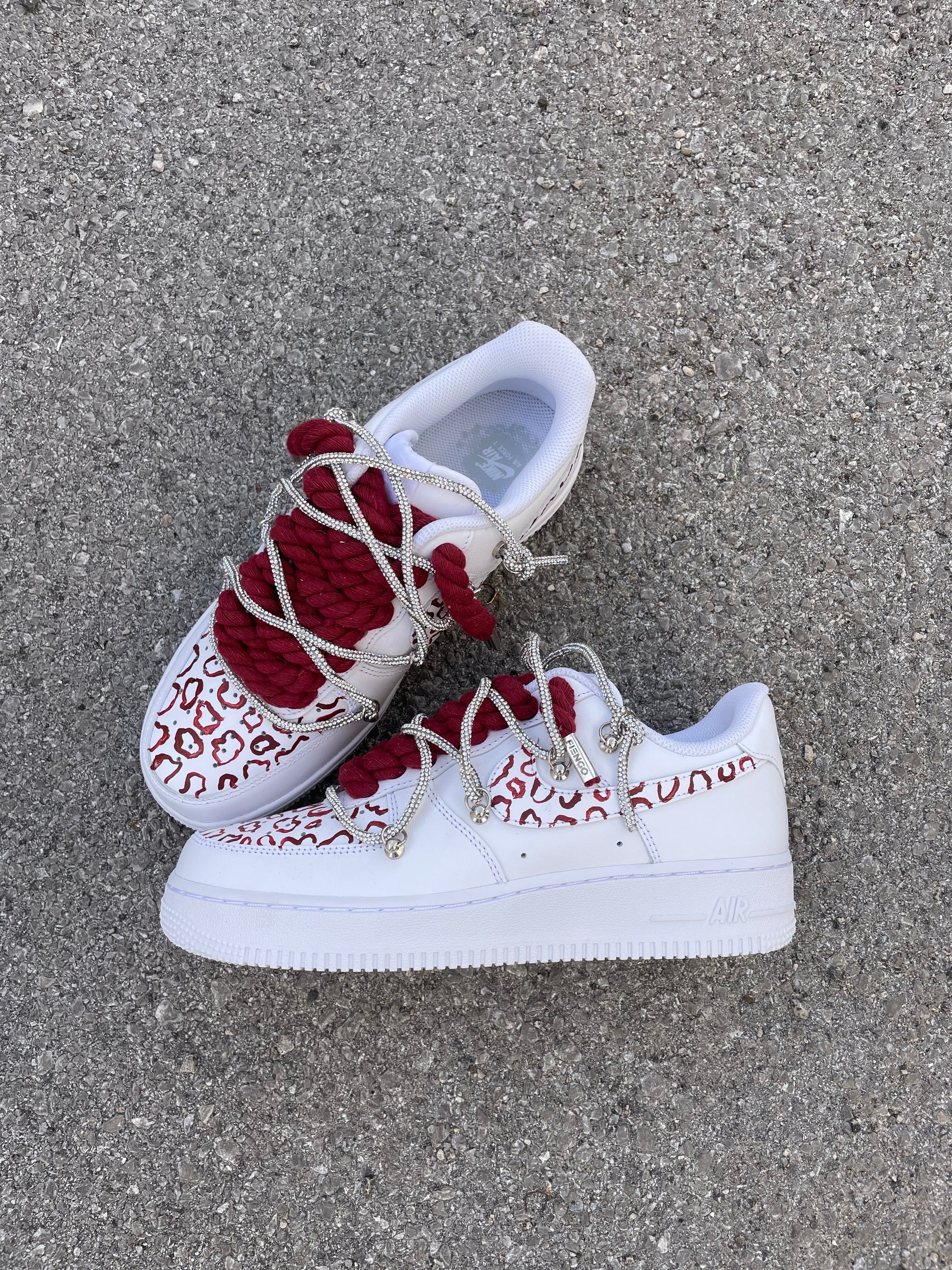 Aggiungi un tocco di stile al tuo guardaroba con le Air Force 1 Leopard Bordeaux. Il loro design con lacci a corda e stampa leopardata è perfetto per un look unico e alla moda. Garantiscono comodità grazie alla loro ammortizzazione leggera, rendendo queste scarpe perfette per ogni occasione.