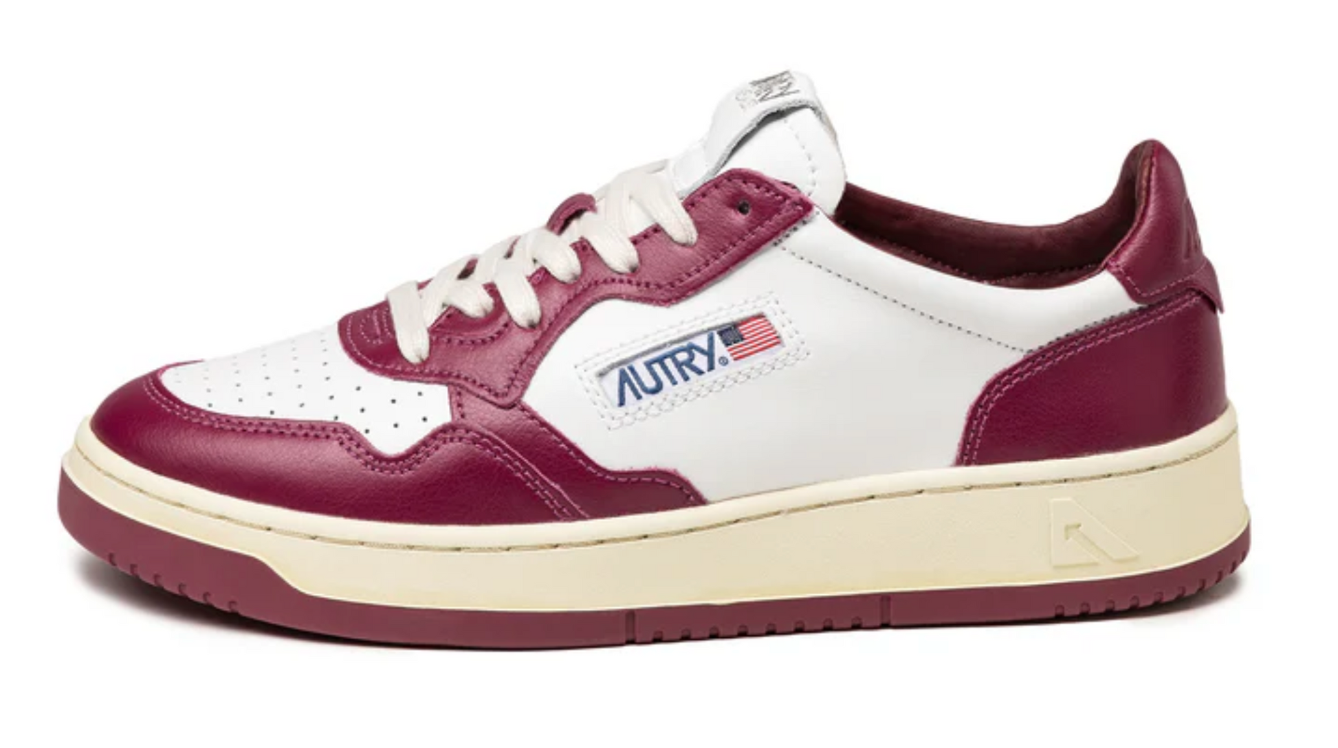 La scarpa da ginnastica da donna è realizzata in morbida pelle di capra beige ed è rifinita da una finitura effetto matte che copre interamente la tomaia e la suola in gomma. La punta con microfori aumenta la traspirabilità, mentre il dettaglio laterale spicca con il caratteristico logo Autry.