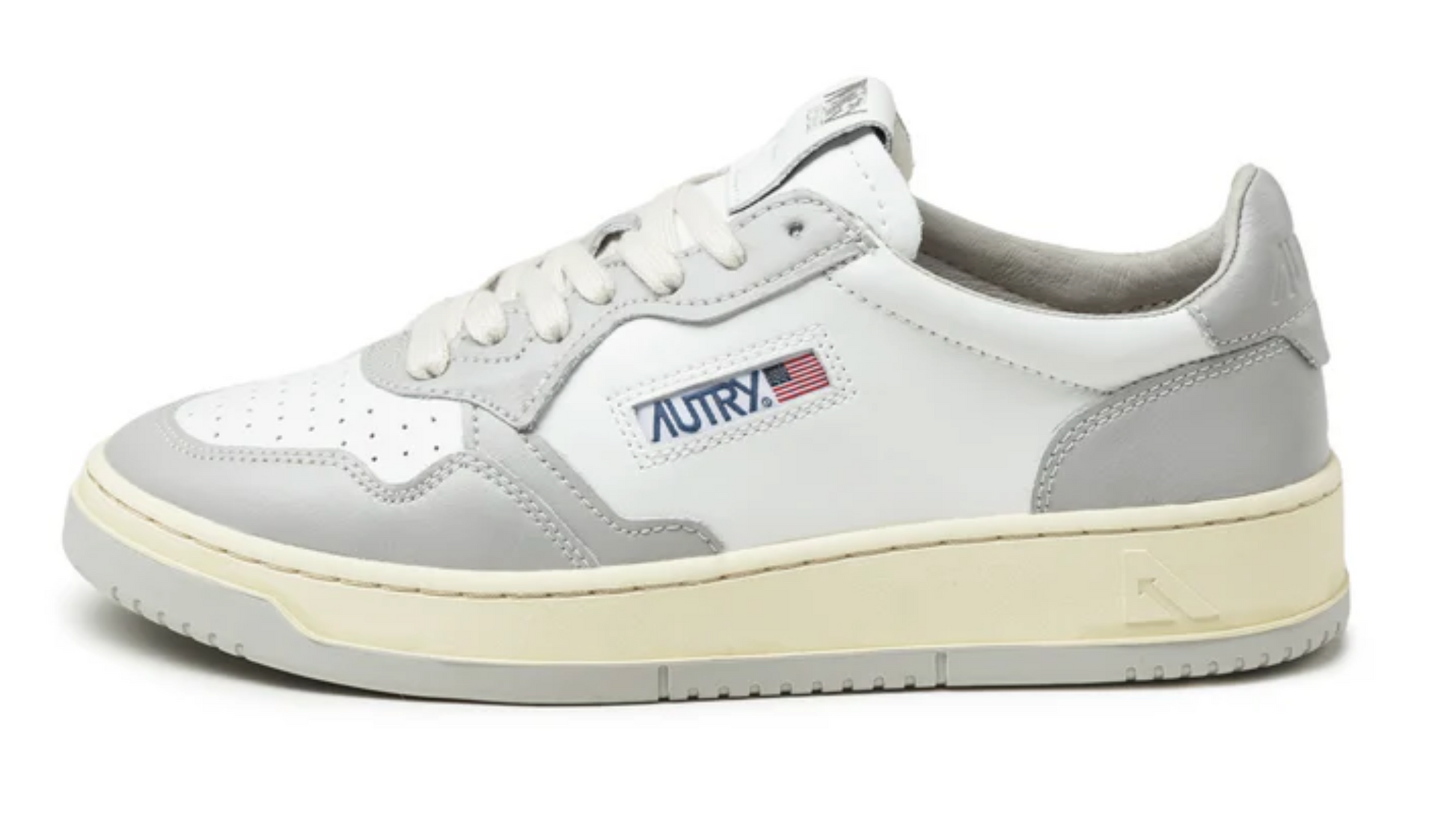 La scarpa da ginnastica da donna è realizzata in morbida pelle di capra beige ed è rifinita da una finitura effetto matte che copre interamente la tomaia e la suola in gomma. La punta con microfori aumenta la traspirabilità, mentre il dettaglio laterale spicca con il caratteristico logo Autry.
